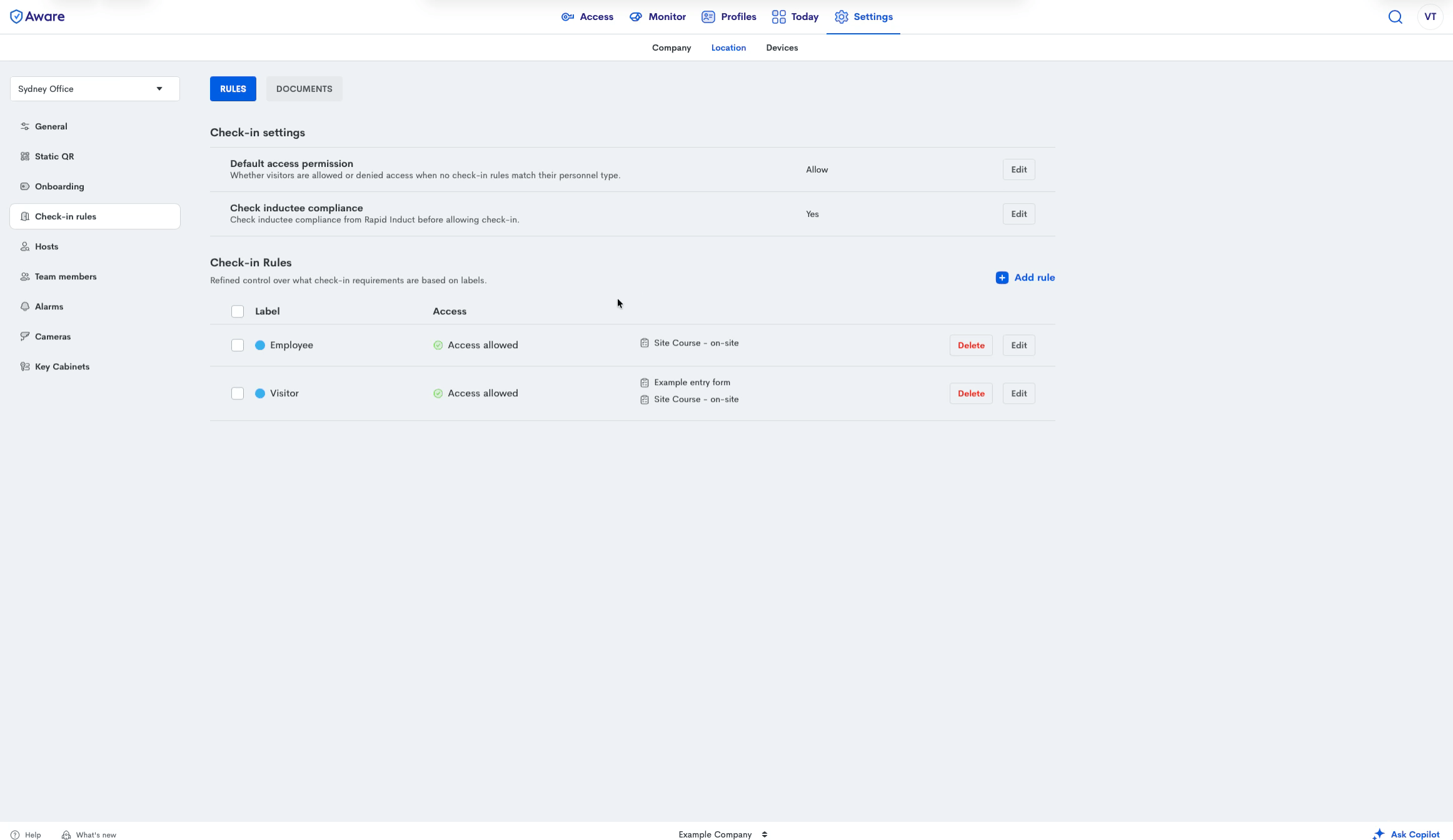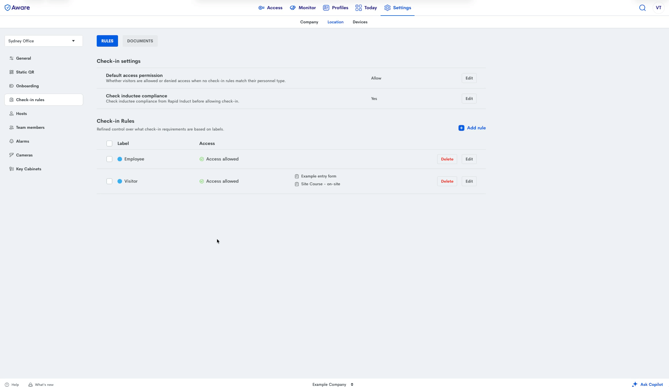 You can create, edit and delete Check-in rules on the Aware Web App 🖥️.